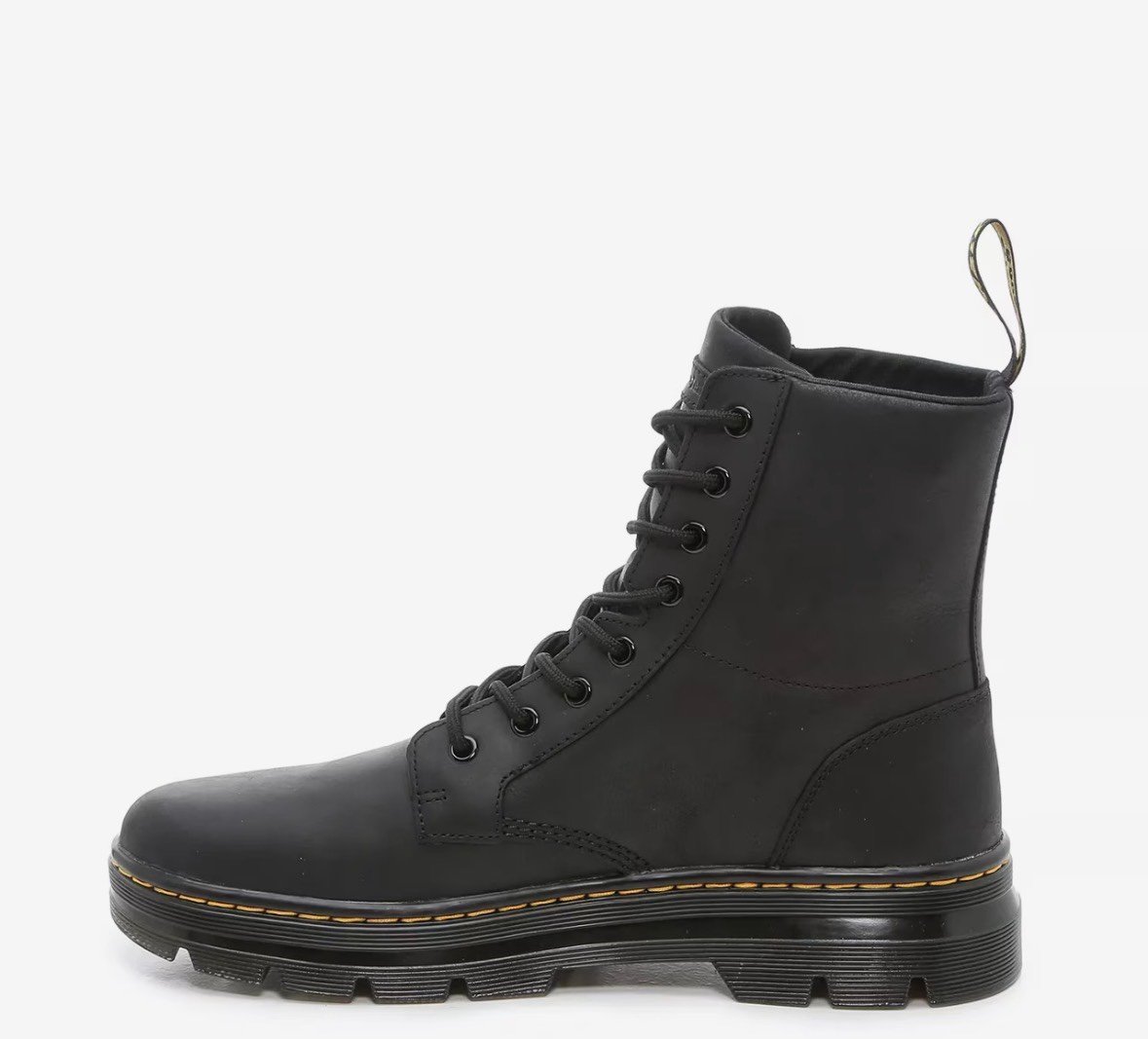Nothing beats the cool styling and well-loved quality of a pair of Dr. Martens. With a durable leather upper and the brand's signature rubber gum lug sole, the Combs boot is a lasting style icon that mixes combat accents with contrast yellow stitching and a matching heel pull.