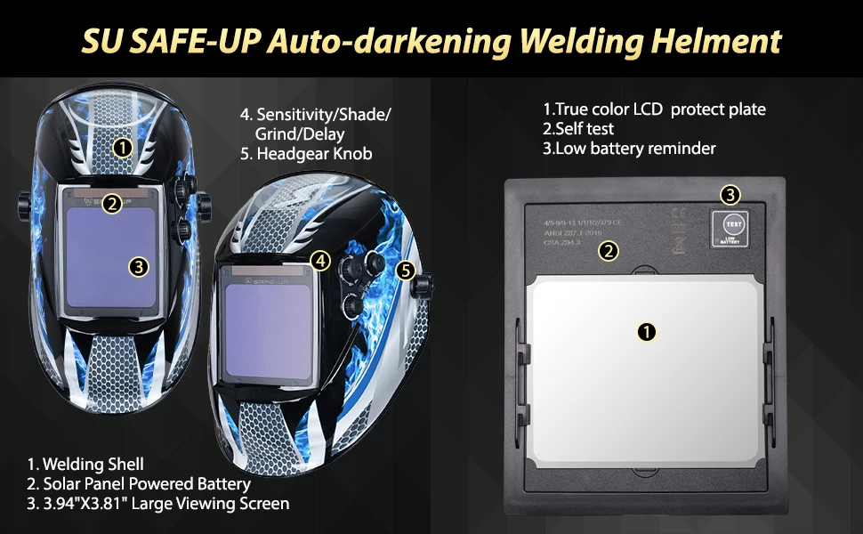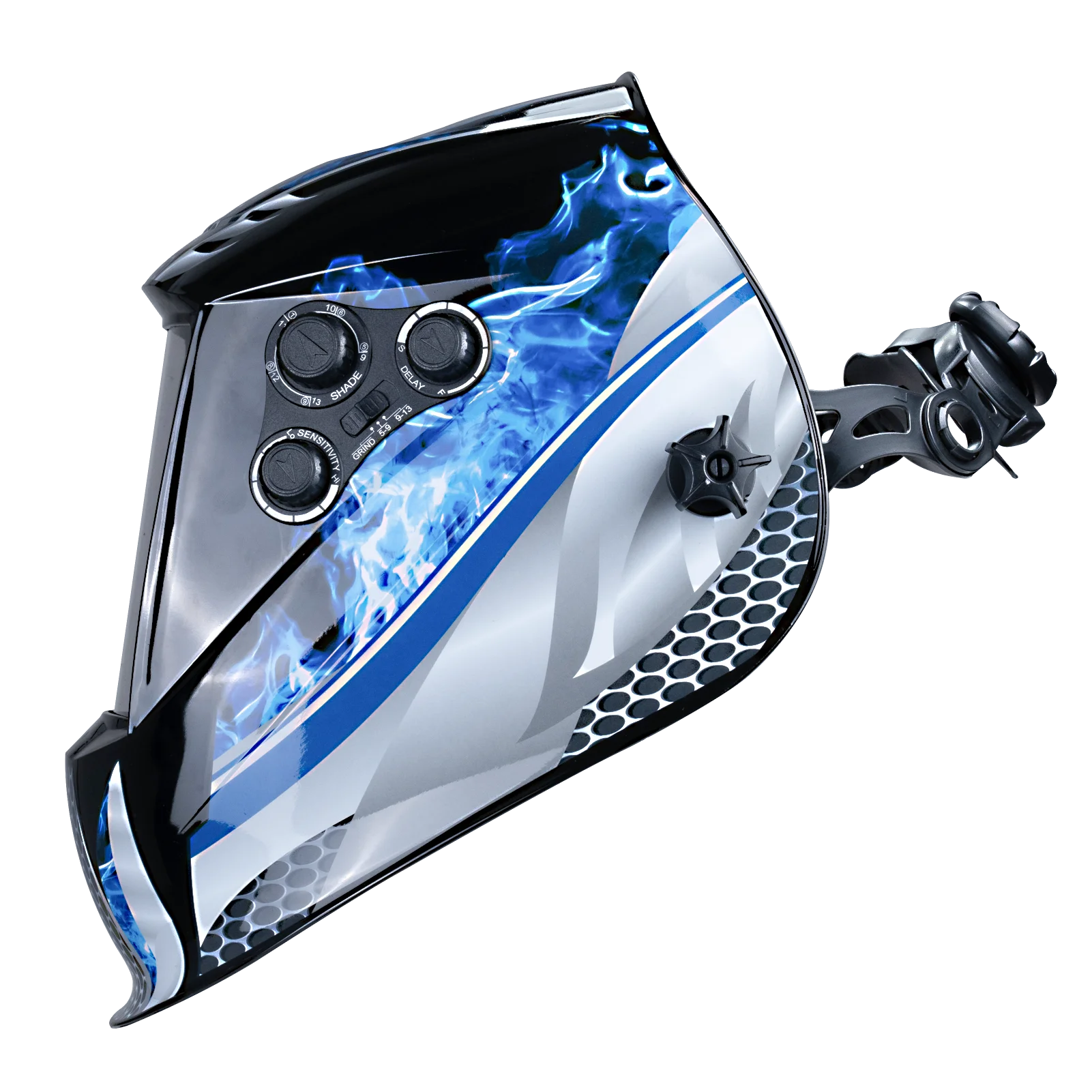 Auto-Darkening Welding Helmets are designed to protect the eye and face from sparks, spatter, and harmful radiation under normal welding conditions auto-darkening filter automatically changes from a light state to a dark state when an arc is struck. And it returns to the light state when welding stops.
