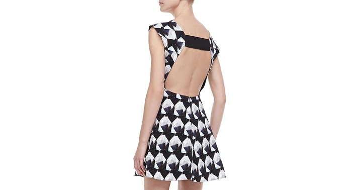 High square neckline; open back.